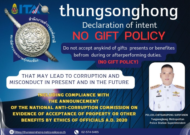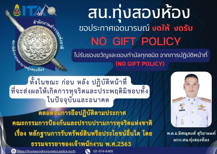 พ.ต.อ.ชิศณุพงศ์ สุริยานนท์ ผกก.สน.ทุ่งสองห้อง พร้อมผู้บังคับบัญชาทุกสายงาน ลงตรวจเยี่ยมประชาชนเพื่อรับฟังปัญหาและประชาสัมพันธ์ รวมถึงการเผยแพร่แนวคิดกระตุ้นจิตสำนึก ต่อต้านการเรียกรับสินบน สัปดาห์ละ 1 ครั้ง